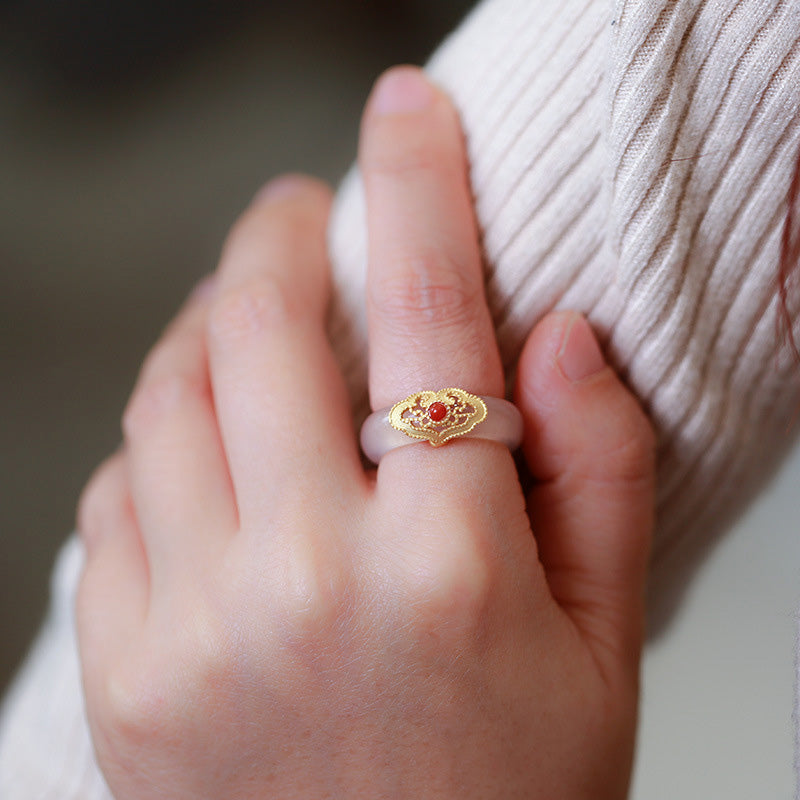 Buddha Stones Biały Agat Cyjan Jadeit Turkusowy Czerwony Agat Pierścień Ochronny Szczęścia