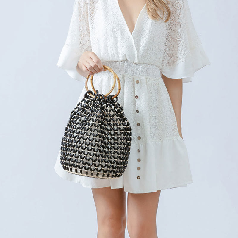 - ❤️ Wysokiej jakości materiał: torby wykonane są z drewnianych koralików i bawełny poliestrowej, są trwałe i można je nosić przez długi czas, a także są idealnym wyborem do noszenia rzeczy, a pasek ułatwia noszenie ich, gdy wychodzisz.