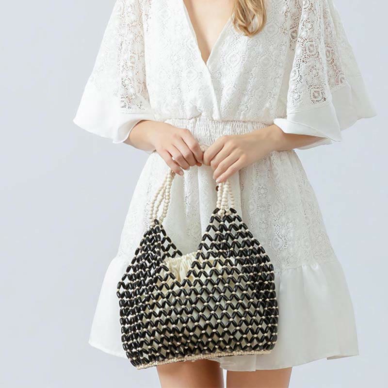 - ❤️ Wysokiej jakości materiał: torby wykonane są z drewnianych koralików i bawełny poliestrowej, są trwałe i można je nosić przez długi czas, a także są idealnym wyborem do noszenia rzeczy, a pasek ułatwia noszenie ich, gdy wychodzisz.