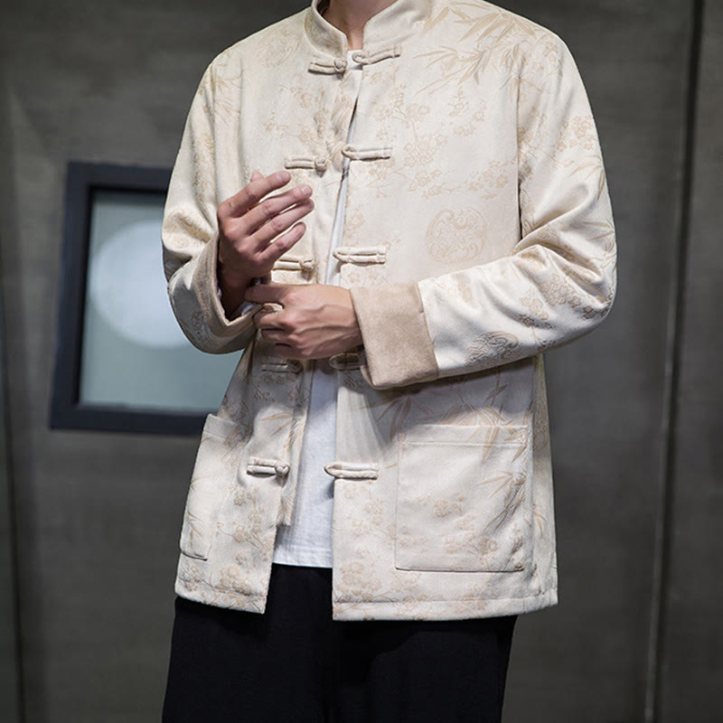 Koszula Flowers Bamboo Cotton Jacket Shirt ma elegancki, jednolity kolor, wzór Tang Suit z haftowanymi kwiatami i bambusem, symbolizującymi odporność i dobrobyt . Wykonana z miękkiej bawełnianej tkaniny z tradycyjnymi żabimi guzikami i wygodnymi kieszeniami, ta koszula-kurtka łączy dziedzictwo kulturowe i praktyczność. Idealna na obchody chińskiego Nowego Roku, symbolizuje błogosławieństwa i ducha świątecznego dzięki swojemu znaczącemu i ponadczasowemu wzornictwu. 💕