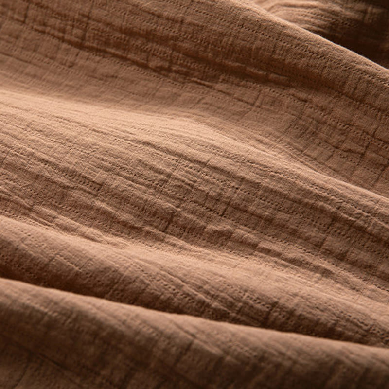 Buddha Stones Jesień Prosty T-shirt z dekoltem w serek Długi rękaw Bawełna Męska Odzież - SandyBrown - US/UK/AU44, EU54 (4XL) - image 0
