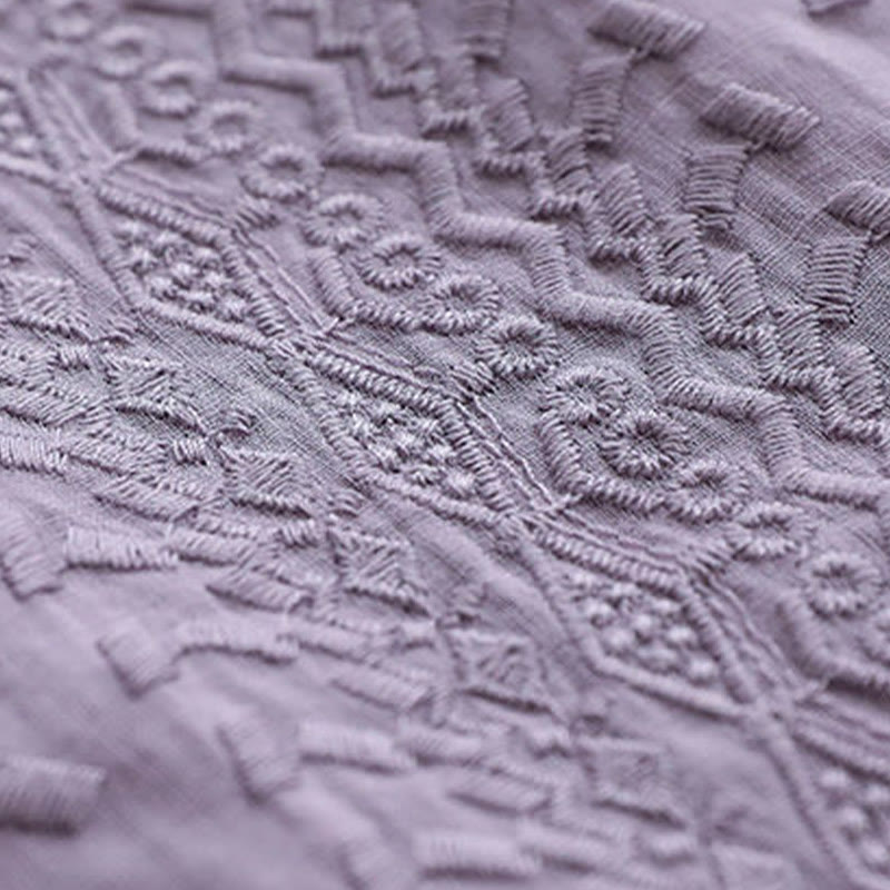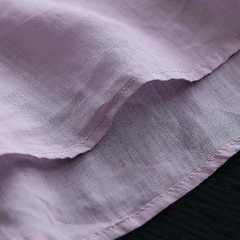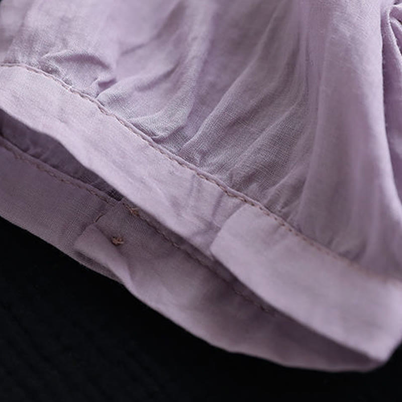 Buddha Stones Letni swobodny haftowany wzór Damska koszulka z dekoltem w serek Półrękaw bawełniany lniany - Śliwka - US8-10,UK/AU12-14,EU40-42 (2XL) - image 0