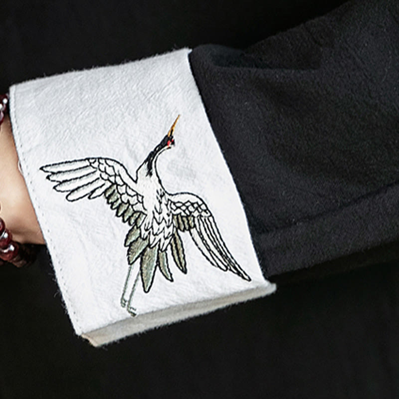 Koszula męska z długim rękawem z bawełny Buddha Stones Tang Suit z żabą i guzikami Crane - Czarny - US/UK/AU46, EU56 (5XL) - image 16