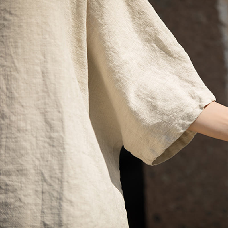 Koszulka z krótkim rękawem z lnu i bawełny oferuje wygodną mieszankę ramii i bawełny, zapewniającą przewiewne dopasowanie. Ta koszulka z krótkim rękawem i okrągłym dekoltem zapinana na jeden guzik uosabia prostotę i wygodę . Naturalne włókna zapewniają trwałość i miękkość, dzięki czemu jest idealnym wyborem na relaks i spokój , idealnym na chwile skupienia. 💕