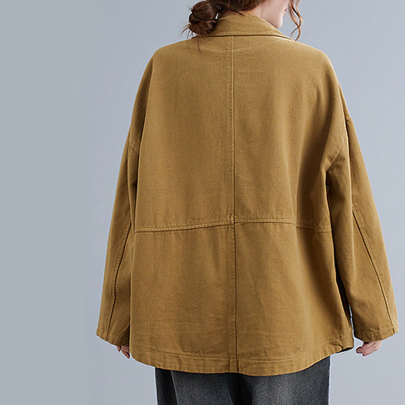 Marynarka damska z długim rękawem i kieszeniami, z bawełny i Buddha Stones w jednolitym kolorze