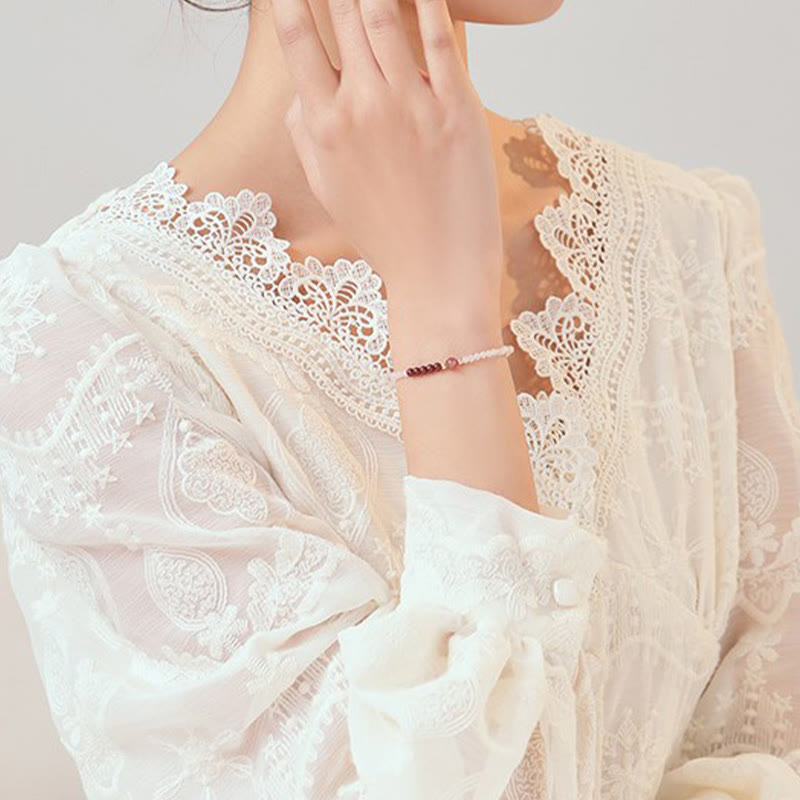 Bransoletka z uzdrawiającej energii Rose Quartz Healing Energy Bracelet zawiera ultracienkie koraliki z różowego kwarcu, granatu i większego koralika Strawberry Quartz. Kwarc różowy jest znany ze swojego związku z miłością i harmonią, podczas gdy granat promuje witalność i pasję . Koralik Strawberry Quartz dodaje odrobinę ciepła i radości. Ta bransoletka została zaprojektowana, aby promować uzdrawianie, równowagę emocjonalną i pozytywny przepływ energii . 💕