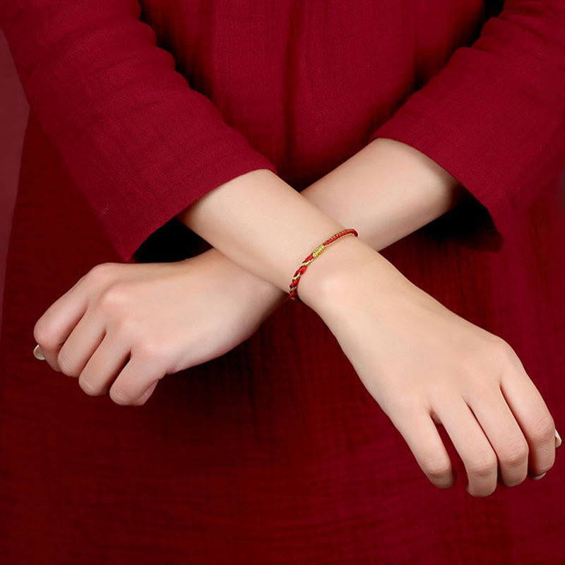 W liniach buddyzmu tybetańskiego wadżrajany wiązanie sznurka lub nici wokół nadgarstka jest powszechne podczas ceremonii. Tradycyjnie lama błogosławi sznurek, a następnie wiąże węzeł i nasyca go mantrą. Podobnie jak w innych tradycjach, mówi się, że te czerwone sznurki przynoszą szczęście i oferują ochronę. W starożytnej chińskiej legendzie Czerwona Nić Przeznaczenia jest - niewidzialna i wiąże wszystkich, których życia się ze sobą splotą. Jest rządzona przez chińskiego boga małżeństwa, Yue Lao, ponieważ jest przede wszystkim kojarzona z więzią między dwojgiem ludzi przeznaczonych do małżeństwa. Przez całą historię i filozofie czerwony sznurek był noszony dla ochrony, wiary, szczęścia, siły i połączenia.