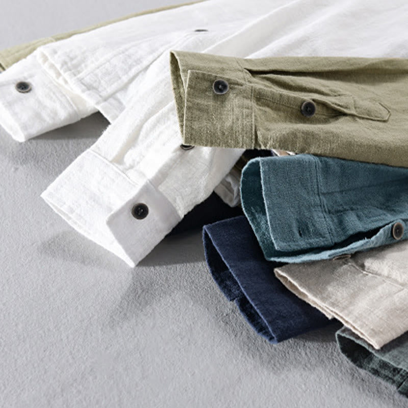 Koszula męska z długim rękawem z bawełny ramii z motywem Buddha Stones w jednolitym kolorze, z guzikami na klapie i prostym wzorem - image 9