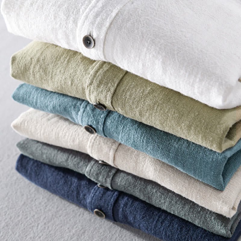 Koszula męska z długim rękawem z bawełny ramii z motywem Buddha Stones w jednolitym kolorze, z guzikami na klapie i prostym wzorem