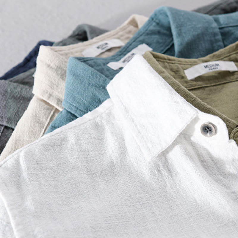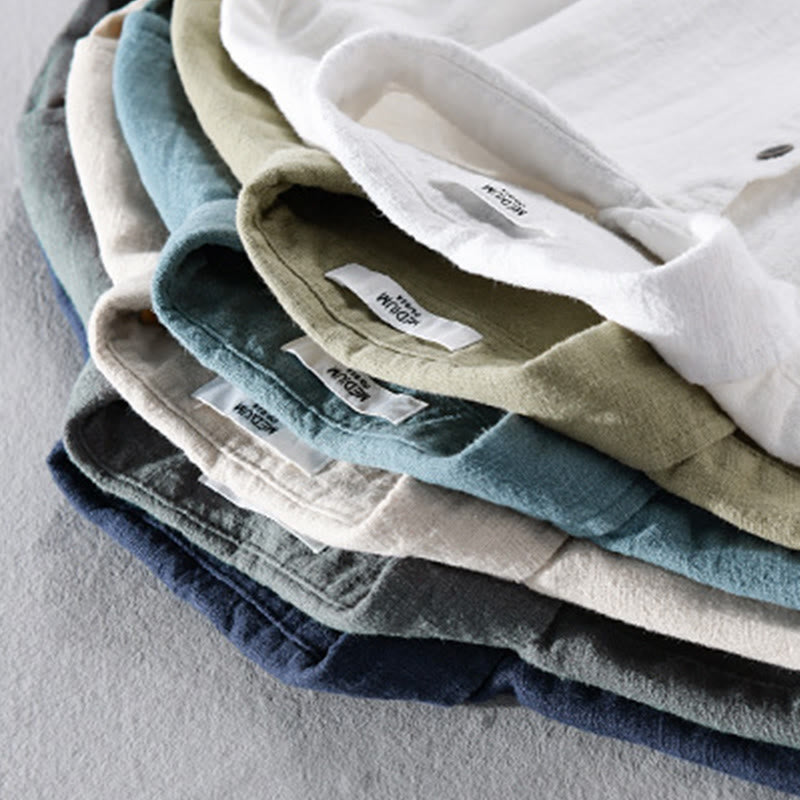 Koszula męska z długim rękawem z bawełny ramii z motywem Buddha Stones w jednolitym kolorze, z guzikami na klapie i prostym wzorem - image 15