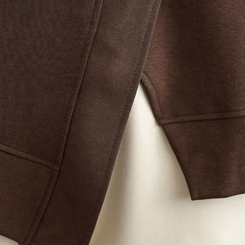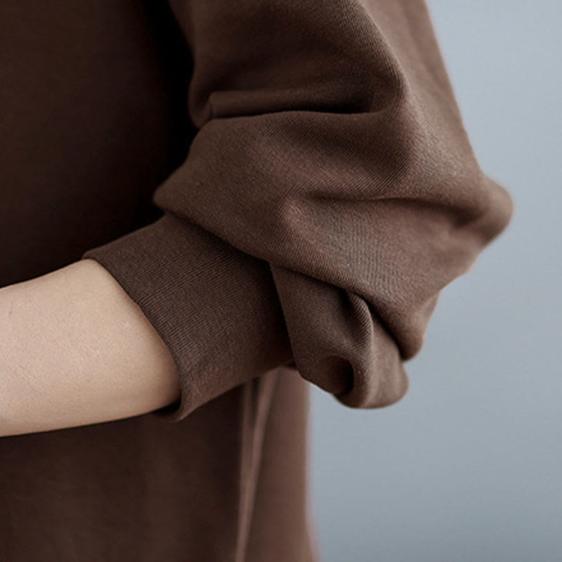 Bluza damska z bawełny z okrągłym dekoltem i długim rękawem w jednolitym kolorze i asymetrycznym wzorem "Buddha Stones Fall" - SaddleBrown - US12, UK/AU16, EU44 (3XL) - image 0
