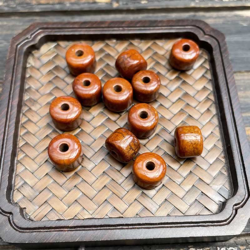 - Materiał: Koraliki z kości (hodowane na farmie), Trójoki koralik Dzi, Agat, Róg owczy (hodowany na farmie), Czerwony agat, Drobnolistne czerwone drzewo sandałowe, Tygrysie oko, Jaspis, Czarny onyks, Stop miedzi