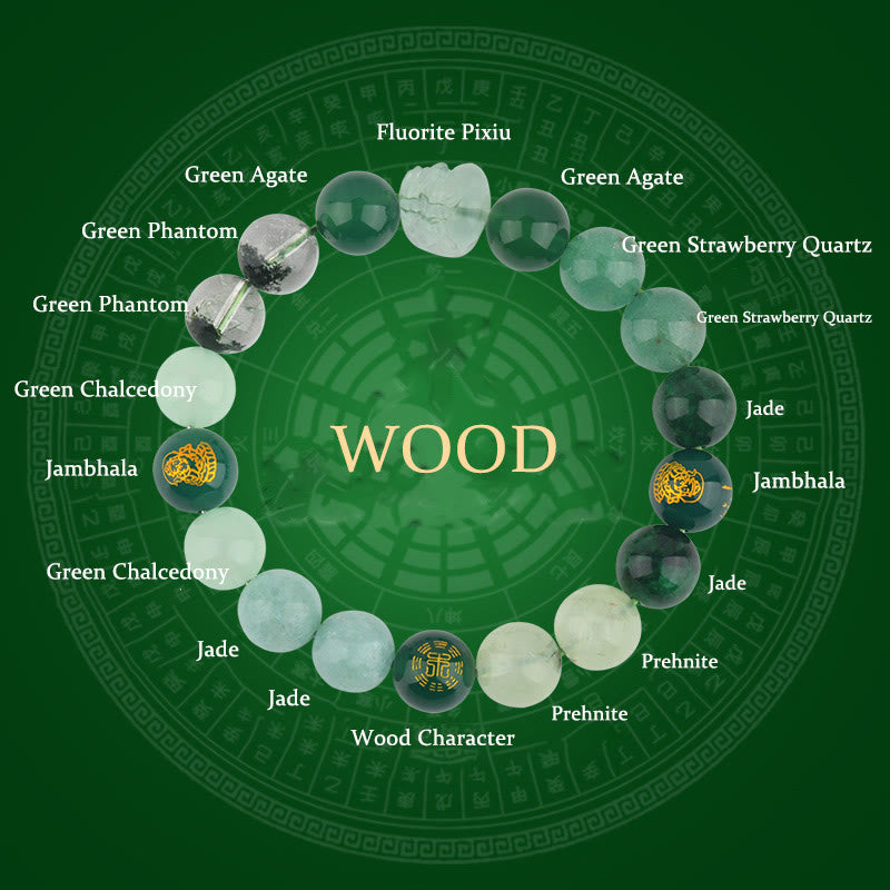 - Materiał: Biały turkus, Biały kryształ, Białe kocie oko, Jambhala, Kamień księżycowy, Azeztulit, Pinctada Maxima, Biały agat, Fluoryt, Zielony kwarc truskawkowy, Zielony chalcedon, Amazonit, Jadeit, Zielony fantom, Jadeit, Zielony agat, Prehnit, Srebrzysty obsydian, Czarny kamień brokatowy, Labradoryt, Czarny onyks, Czarny kamień pasiasty, Złoty obsydian, Niebieskie tygrysie oko, Dymny kwarc, Agat Yanyuan, Kwarc truskawkowy, Czerwony agat, Czerwone tygrysie oko, Sardonyks, Cynober, Rodonit, Kamień słoneczny, Cytryn, Żółty agat, Żółty chalcedon, Tygrysie oko, Topaz, Kwarc rutylowy