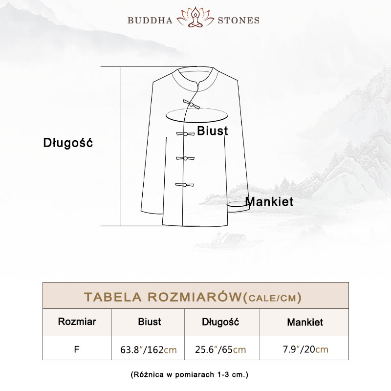 Koszula z długim rękawem Frog-Button została zaprojektowana do praktyk Zen, Tai Chi i medytacji. Ta kurtka w stylu Hanfu ma tradycyjne guziki żaby i luźny krój, wykonana z wygodnej, oddychającej tkaniny . Projekt promuje spokój i równowagę, pomagając skupić się na praktyce i zachować spokój podczas medytacji lub sesji Tai Chi. 💕