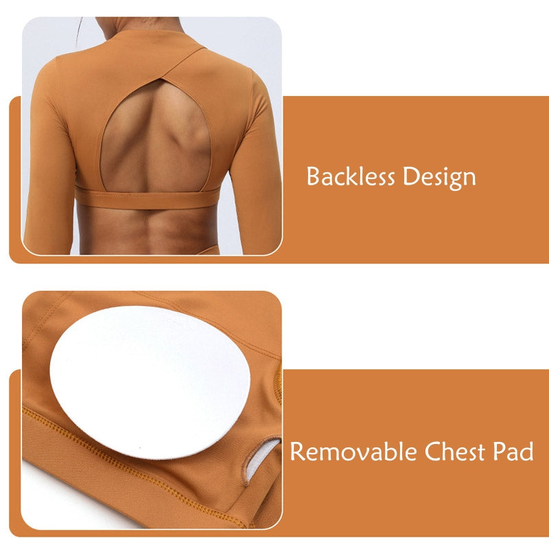Buddha Stones 2 szt. Długi rękaw, top bez pleców, biustonosz, legginsy, spodnie, strój do fitnessu i jogi - Brązowy - US4, UK/AU8, EU36 (XL) - image 0