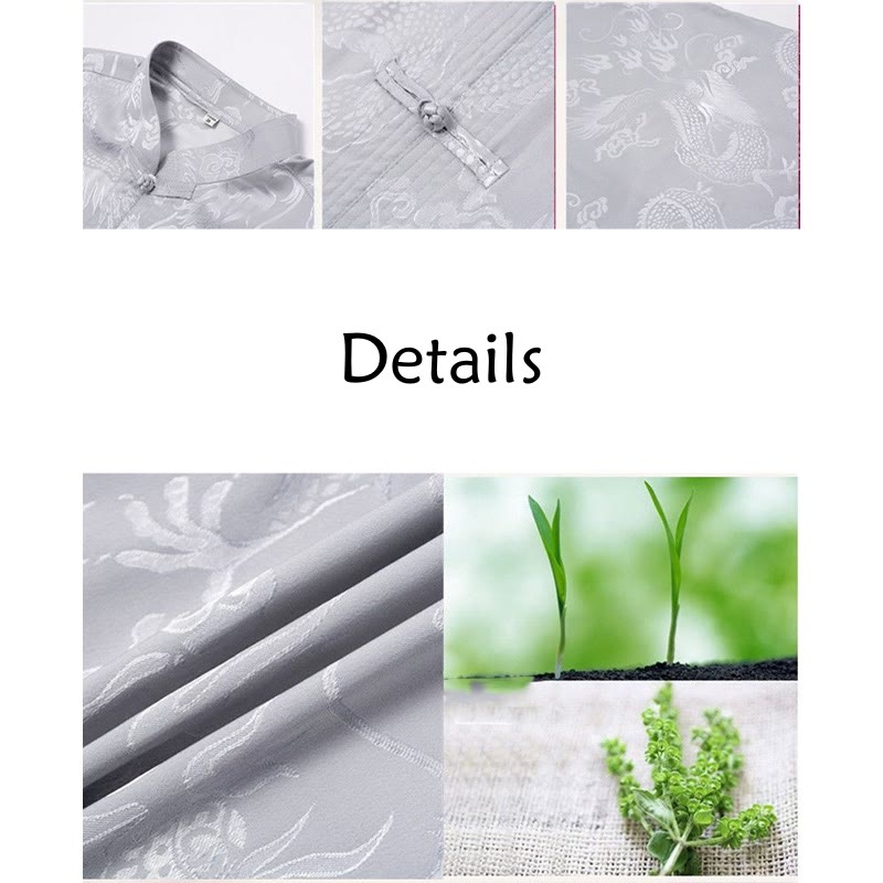 • Tang Suit Craft : Guzik w stylu chińskiej żaby, kołnierz w stylu chińskim. Z tradycyjnym chińskim wykonaniem i wysokiej jakości materiałem poliestrowym.