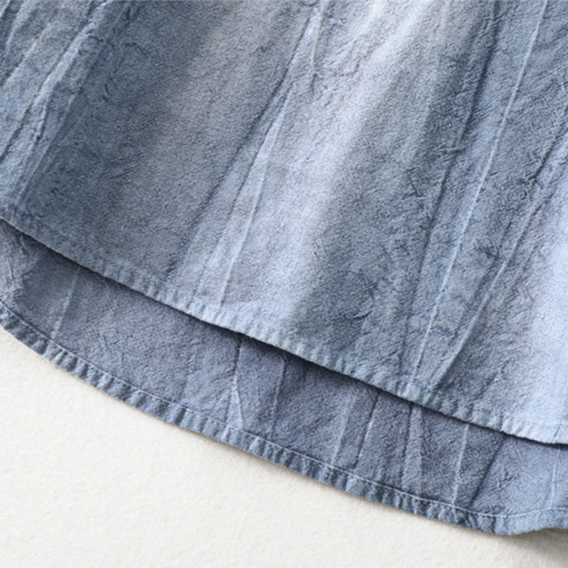 Koszula męska z długim rękawem z bawełny i lnu z prostymi zakładkami i półguzikami w kształcie Buddha Stones