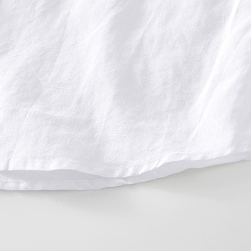 Koszula męska z krótkim rękawem z bawełny i lnu z kieszenią i prostym wzorem "Buddha Stones" z guzikami