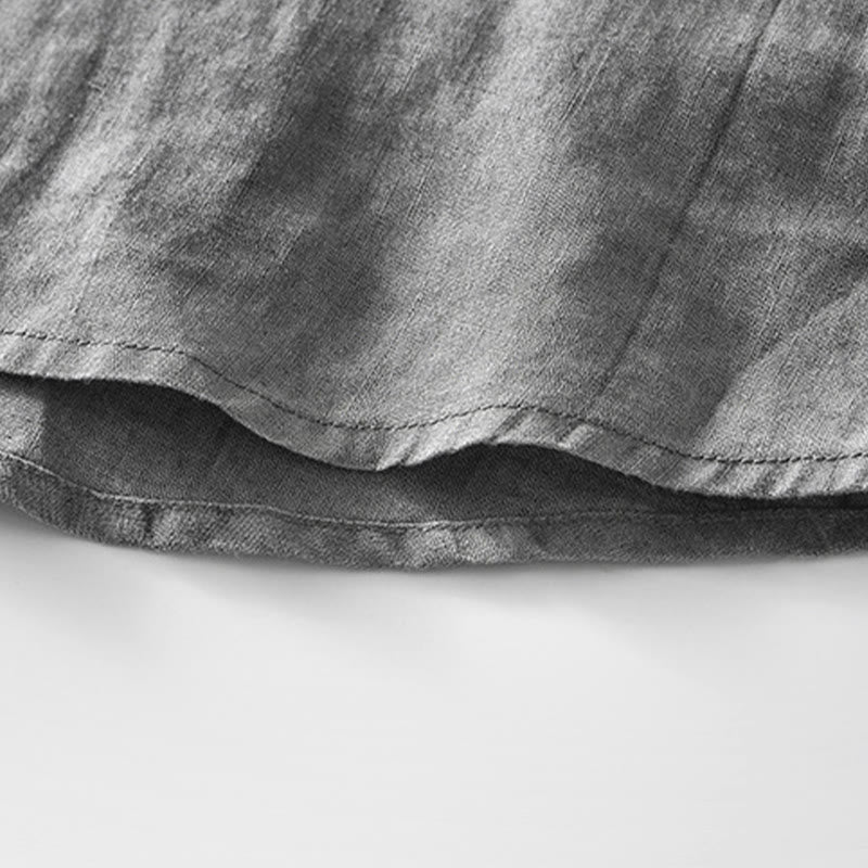 Koszula męska z krótkim rękawem z bawełny i lnu z kieszenią i prostym wzorem "Buddha Stones" z guzikami - Szary - US/UK/AU42, EU52 (3XL) - image 1