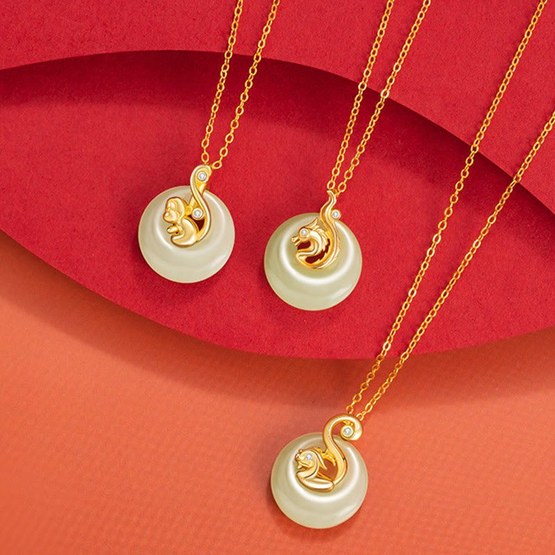 Buddha Stones Chiński Zodiak Hetian Jade Naszyjnik Obfitość 925 Srebro Sterling Wisiorek - Jadeit Hetian, srebro próby 925 – małpa - image 25