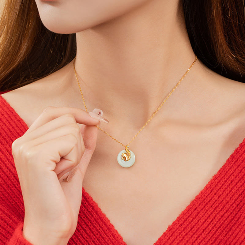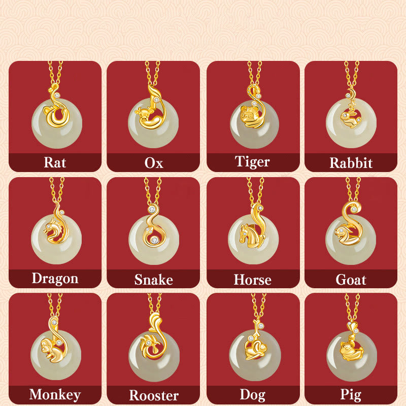 Buddha Stones Chiński Zodiak Hetian Jade Naszyjnik Obfitość 925 Srebro Sterling Wisiorek