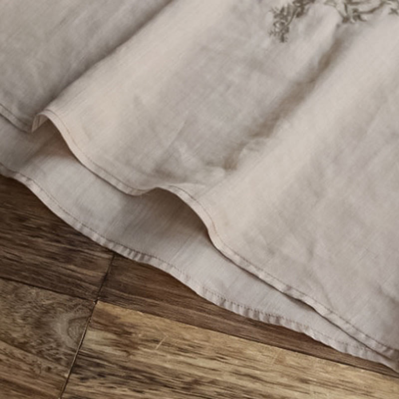 Buddha Stones Casual Haft Półbufiaste Rękawy Falbany Okrągły Dekolt Bawełna Len Damska Koszulka T-shirt - image 13
