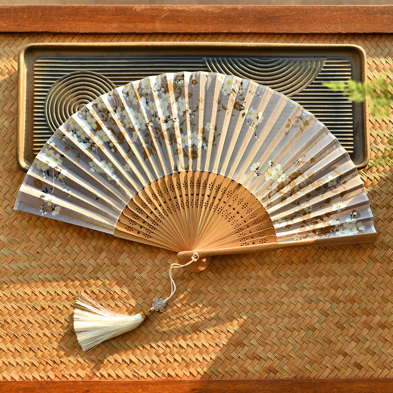 Buddha Stones Kwiaty Sakura Ręczny Składany Wachlarz Bambusowy 21 cm