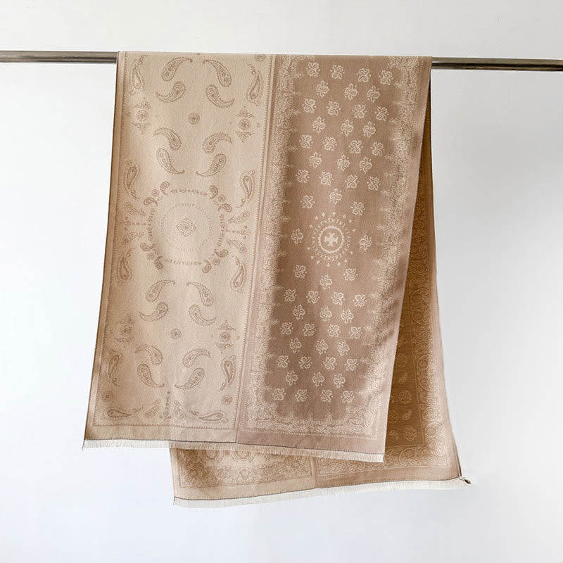 Buddha Stones, etniczny wzór paisley, geometria, patchwork, frędzle, miękki, termiczny, gruby szalik - BurlyWood - 186*66 cm - image 14
