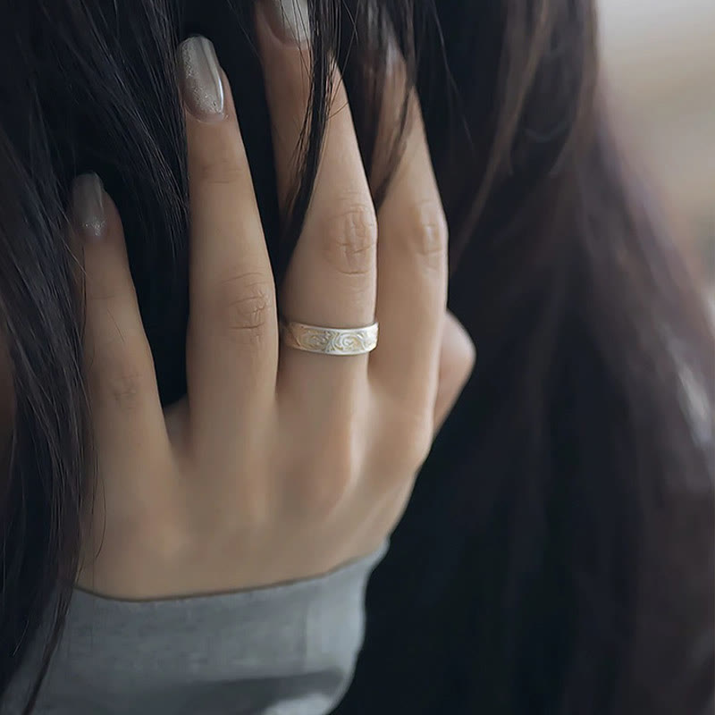 Kamień Buddy 999 Srebro próby 925 Pozłacany Radosny Kwiatowy Wzór Spokojnego Serca Sutra Pierścień - Radosna Sutra Serca - image 0