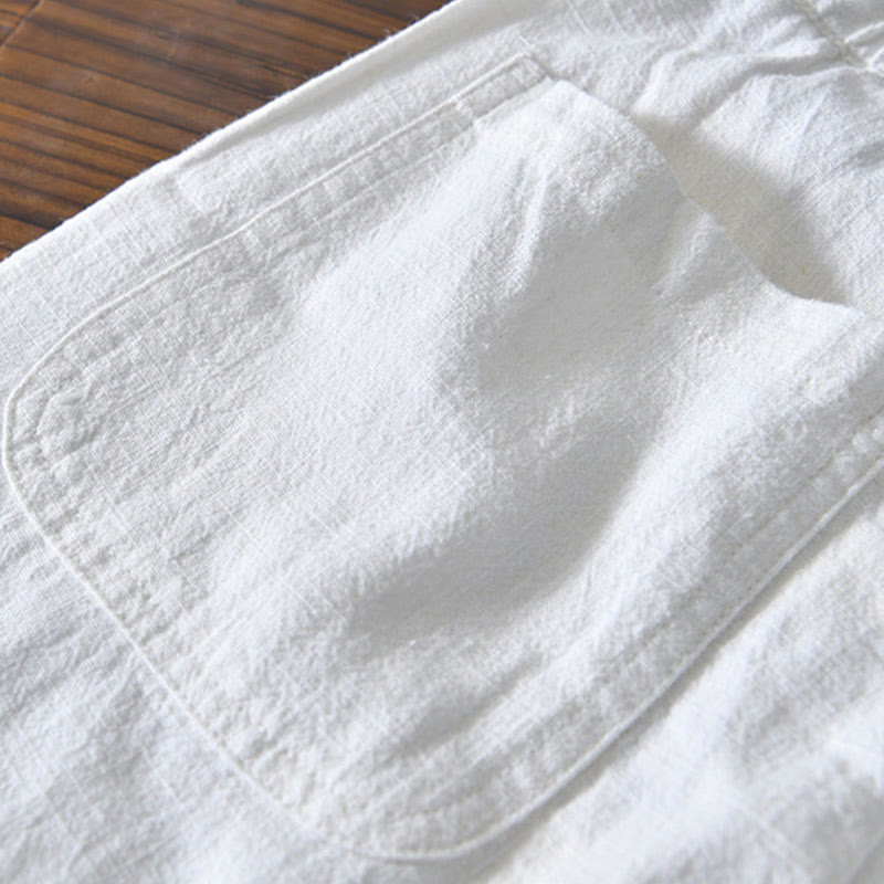 Buddha Stones Casual Jednolity Kolor Prosty Design Ściągacz Ramie Lniane Męskie Spodnie Z Kieszeniami - Biały - US/UK/AU44, EU54 (4XL) - image 5