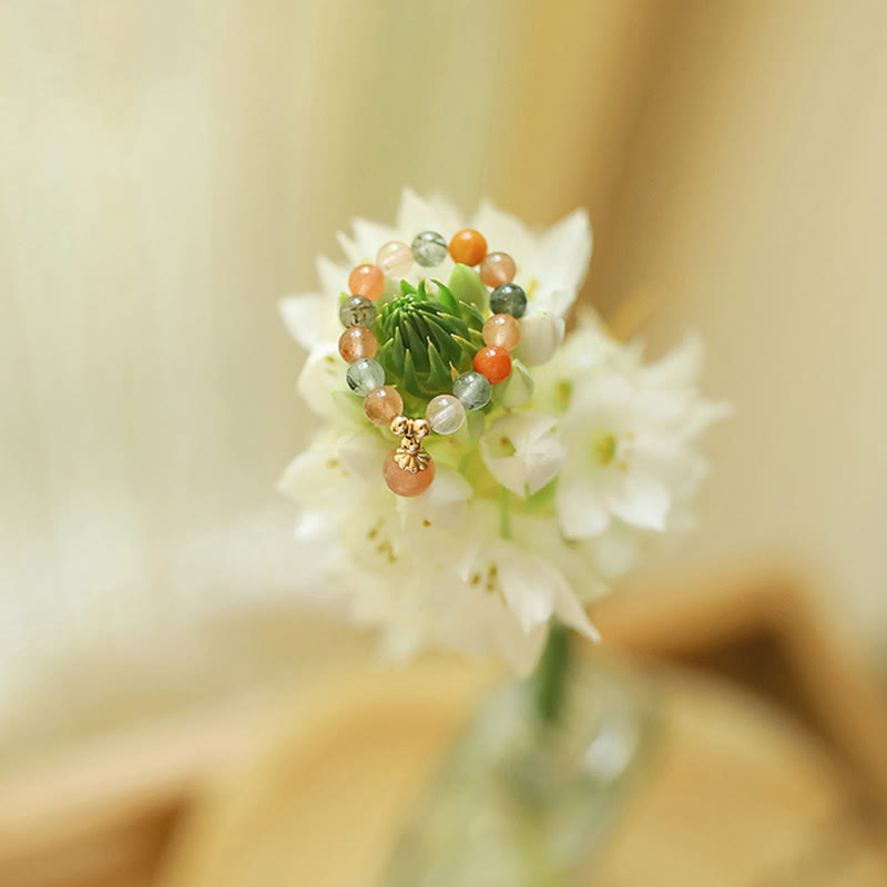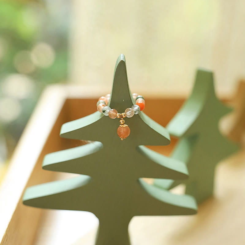 • Rozmiar koralików: Kryształ Fulu Shou: 4,5 mm, Brzoskwiniowy kamień księżycowy: 6 mm, Koraliki miedziane: 2,5 mm, Przekładka: 4 mm