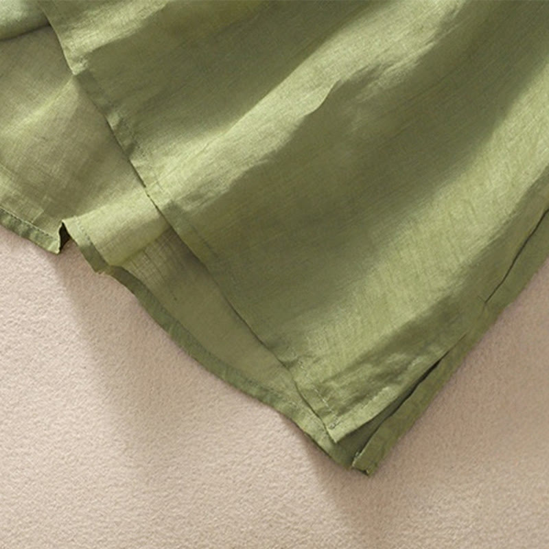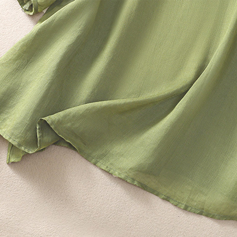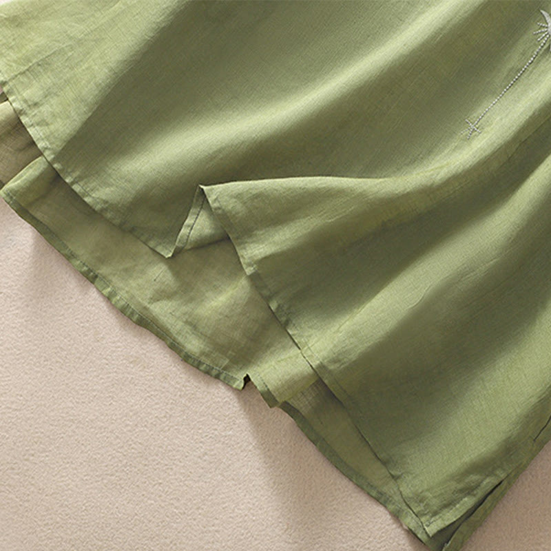 Damska bawełniana lniana koszulka z krótkim rękawem i haftem "Buddha Stones" z kwiatowym wzorem i rozcięciem u dołu - LimeGreen - US14, UK/AU18, EU46 (2XL) - image 1