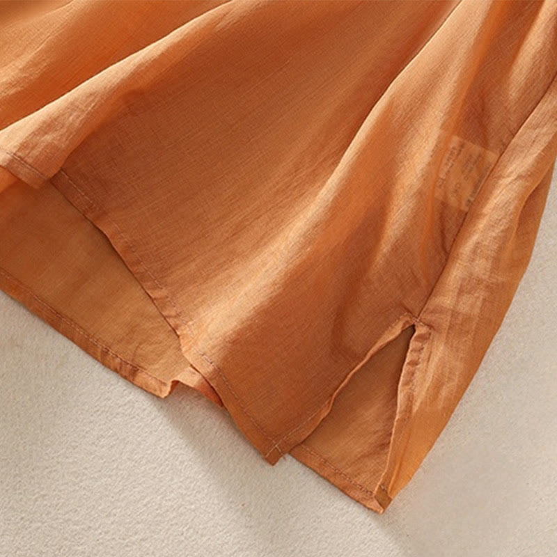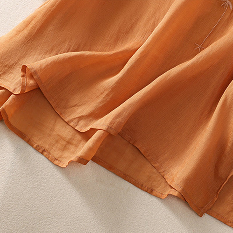 Damska bawełniana lniana koszulka z krótkim rękawem i haftem "Buddha Stones" z kwiatowym wzorem i rozcięciem u dołu - Ciemnopomarańczowy - US14, UK/AU18, EU46 (2XL) - image 10