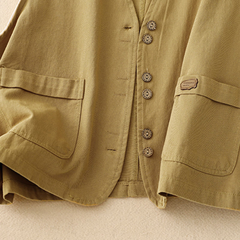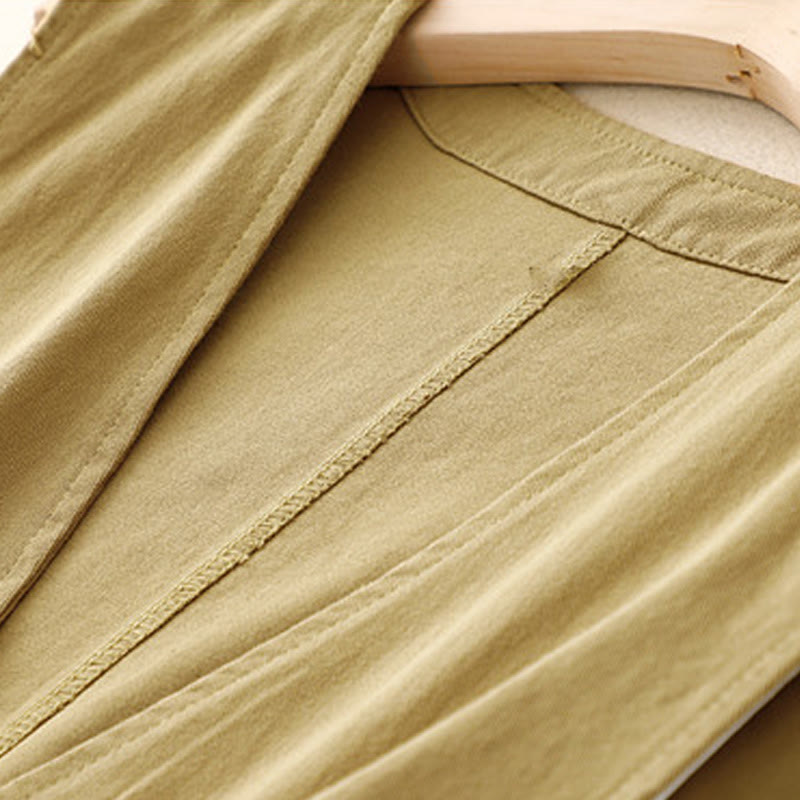 Kamizelka damska z bawełny bez rękawów z kieszeniami i guzikami z przodu w jednolitym kolorze z Buddha Stones