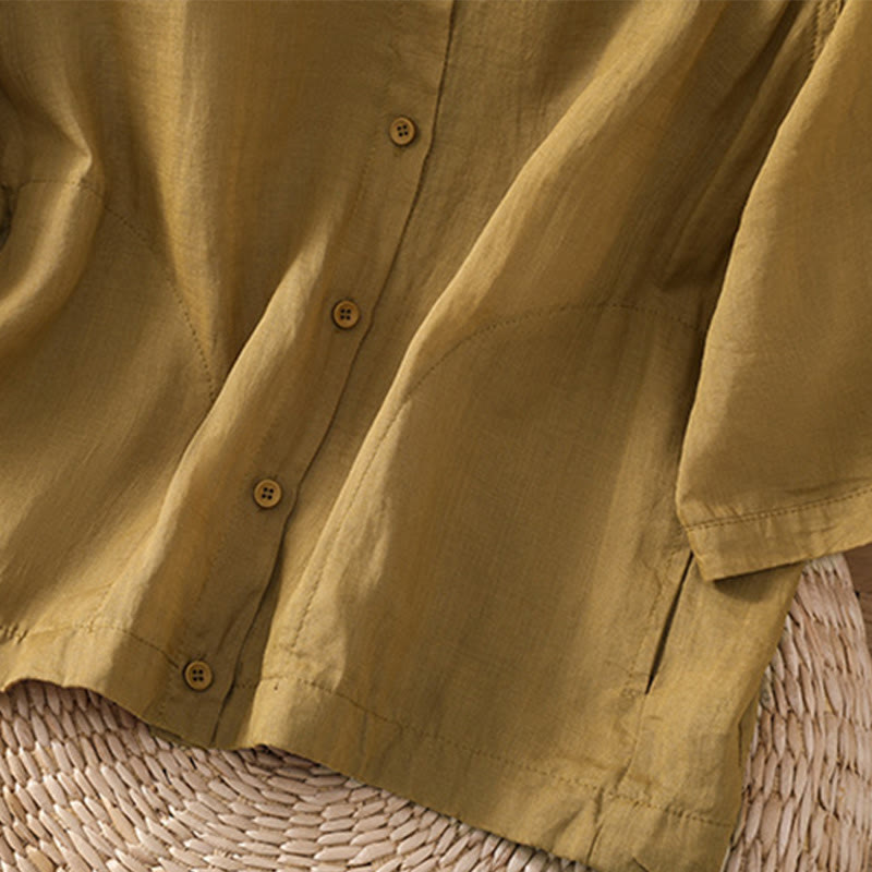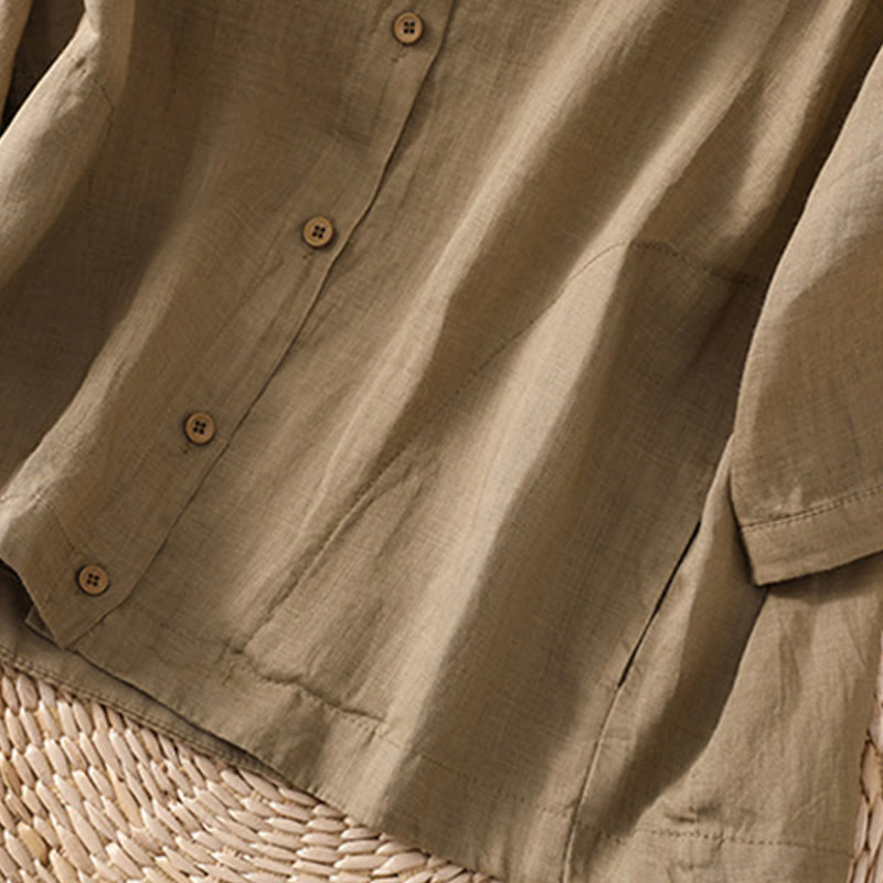 Koszula damska z bawełny i lnu z kieszeniami i rękawami trzy czwarte "Buddha Stones Daily" - image 24