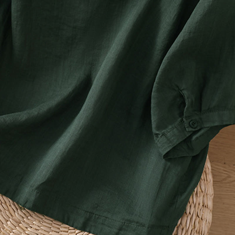Koszula damska z bawełny i lnu z kieszeniami i rękawami trzy czwarte "Buddha Stones Daily" - Ciemnozielony - US14, UK/AU18, EU46 (2XL) - image 20