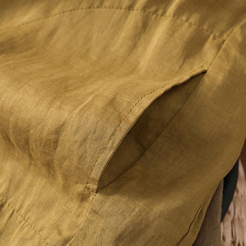 Koszula damska z bawełny i lnu z kieszeniami i rękawami trzy czwarte "Buddha Stones Daily"