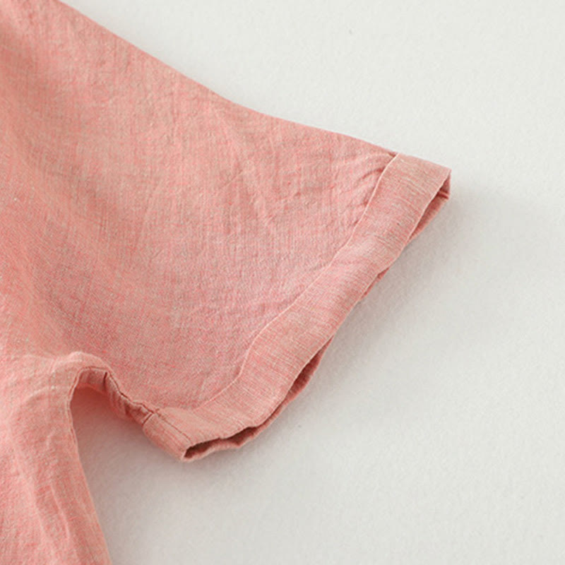 Koszula damska z bawełny i lnu z krótkim rękawem i prostymi guzikami "Buddha Stones"