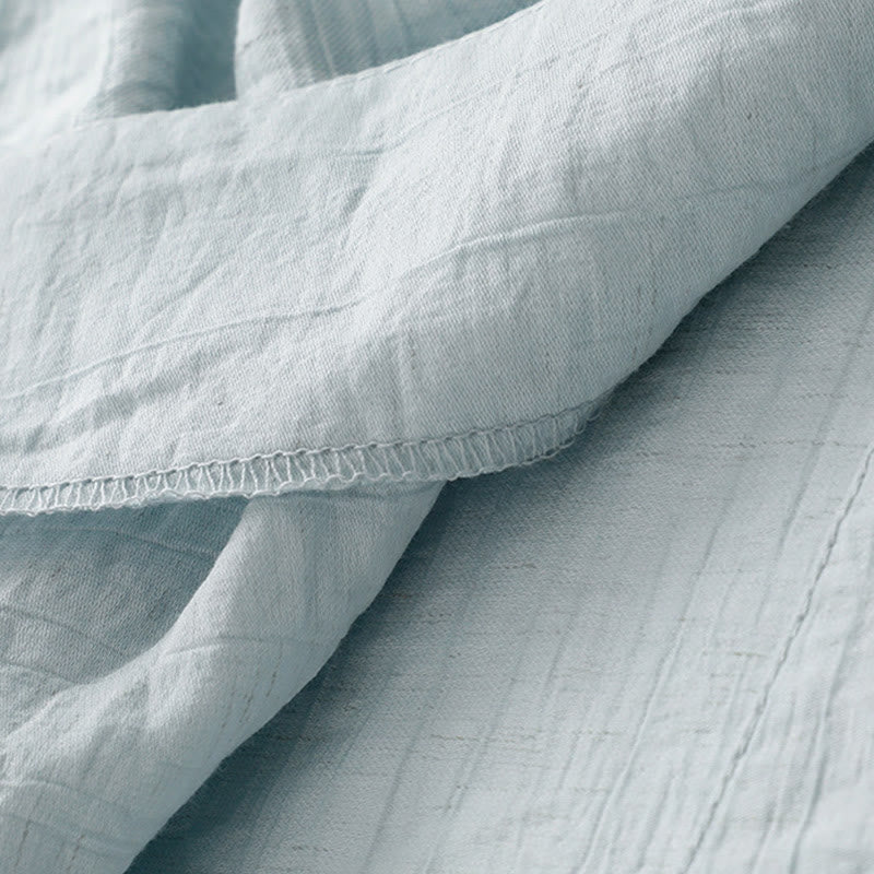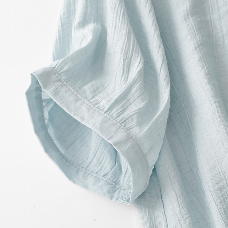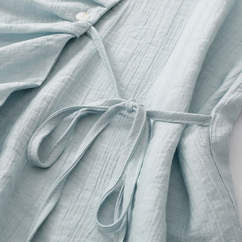 Koszula damska z krótkim rękawem z bufiastymi, bawełnianymi rękawami i asymetrycznym sznurowaniem w kolorze Buddha Stones - PowderBlue - US8-10,UK/AU12-14,EU40-42 (2XL) - image 1
