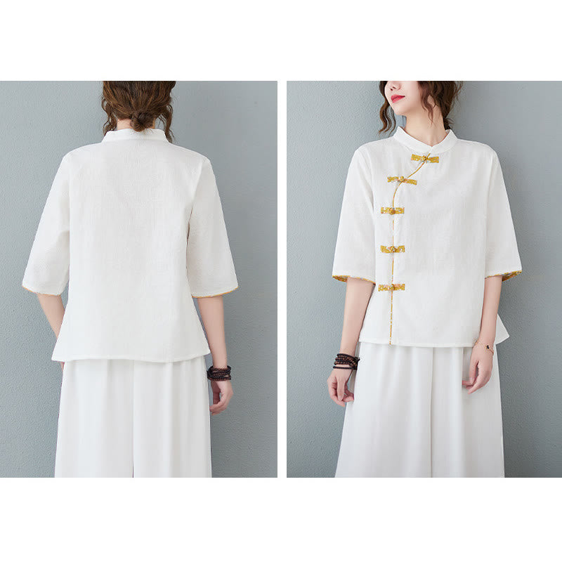 Koszula z kwiatowym wzorem i guzikiem w kształcie żaby łączy tradycyjny styl z nowoczesną wygodą. Ta koszula z krótkim rękawem zdobiona jest misternymi kwiatowymi wzorami i klasycznym zapięciem na guzik w kształcie żaby , podkreślając kulturową elegancję. Wykonana z przewiewnej bawełny lnianej, zapewnia luźny krój przez cały dzień . Idealna na różne okazje, jej unikalny design doda Twojej garderobie odrobinę wyrafinowania i dziedzictwa. 💕