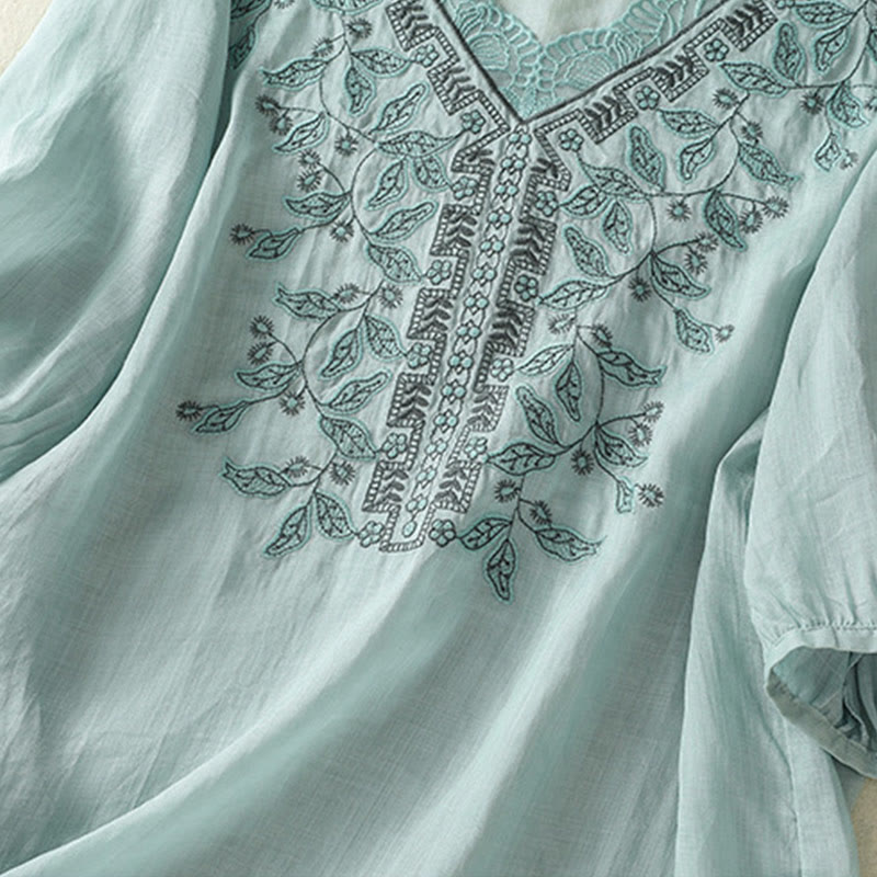 Koszulka damska z krótkim rękawem i haftowaną koronką z motywem Buddha Stones - LightSkyBlue - US8-10,UK/AU12-14,EU40-42 (2XL) - image 9