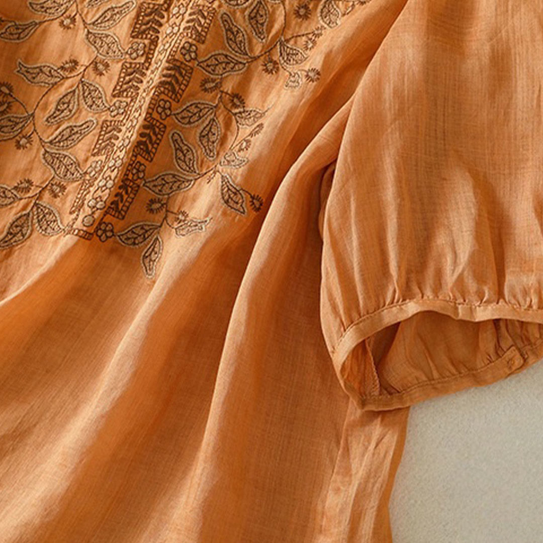 Koszulka damska z krótkim rękawem i haftowaną koronką z motywem Buddha Stones - Czekolada - US8-10,UK/AU12-14,EU40-42 (2XL) - image 1