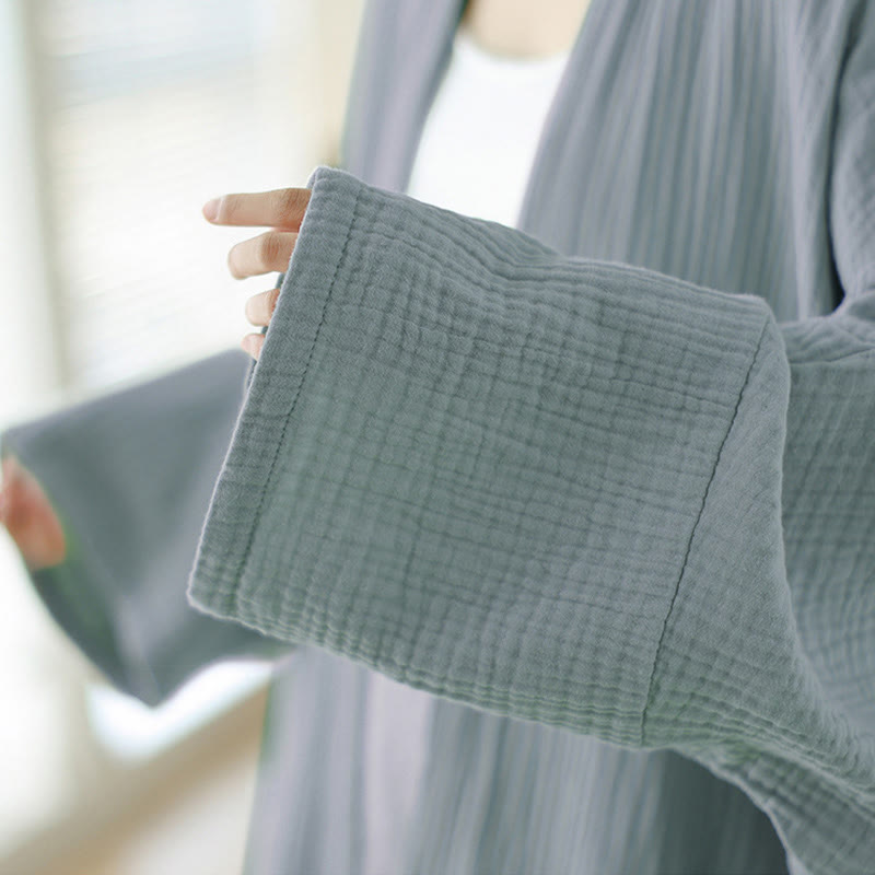 Kurtka z lnu bawełnianego z kieszeniami, z długim rękawem i motywem medytacji zen, z Buddha Stones - LightSteelBlue - US12, UK/AU16, EU44 (XL) - image 15