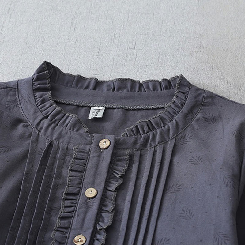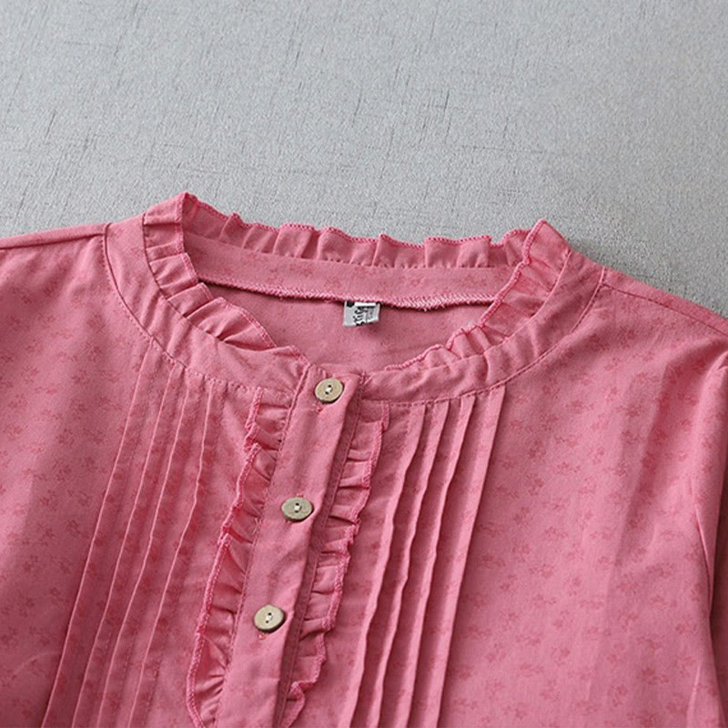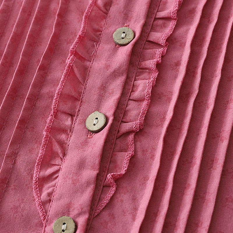 Buddha Stones Casual Retro Jednolity Kolor Guzik Marszczony Okrągły Dekolt Projekt Krótki Rękaw Bawełna Len Midi Sukienka Z Kieszeniami