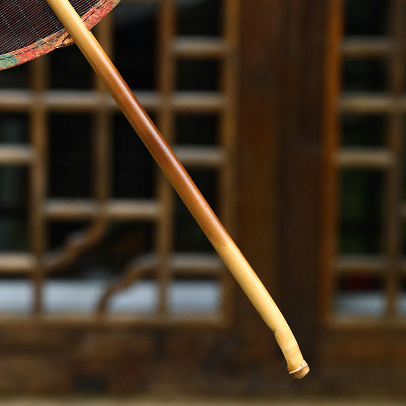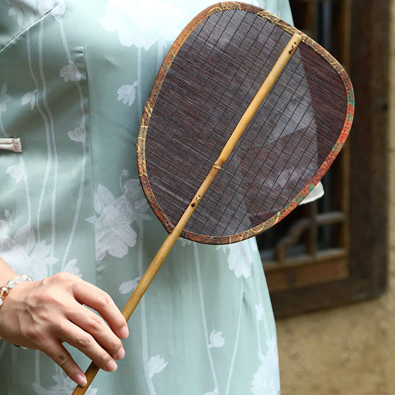 Buddha Stones Lato Retro Chiński Styl Ręcznie Bambusowe Tkane Okrągłe Bananowe Kształt Długi Uchwyt Wentylatora