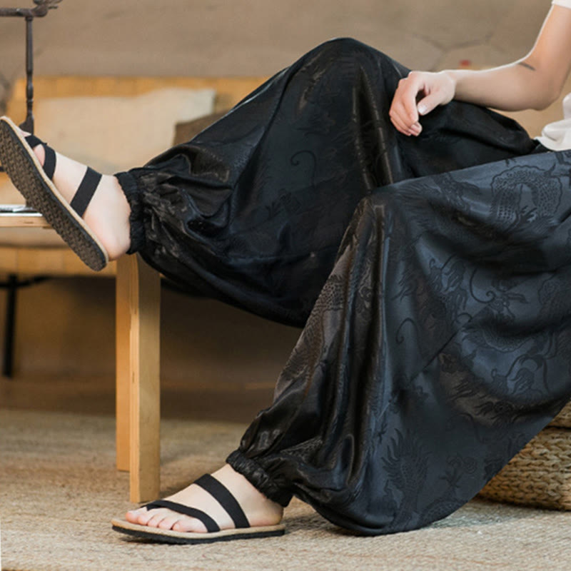 Buddha Stones Wzór Smoka Luźne Męskie Spodnie Harem Z Kieszeniami