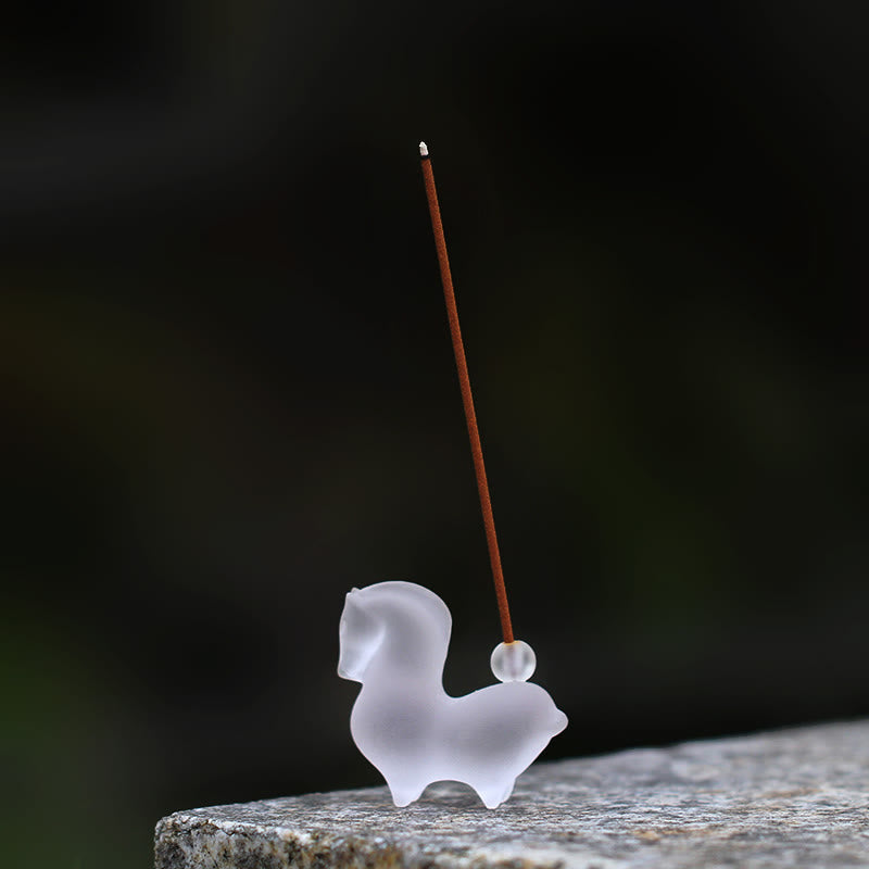 Buddha Stones Rok Konia Strąk Lotosu Liść Lotosu Kryształ Liuli Dzieło Sztuki Dekoracja Energetyczna Do Domu i Biura - Koń z otworem na kadzidło 4,5*2*4,2 cm - image 17