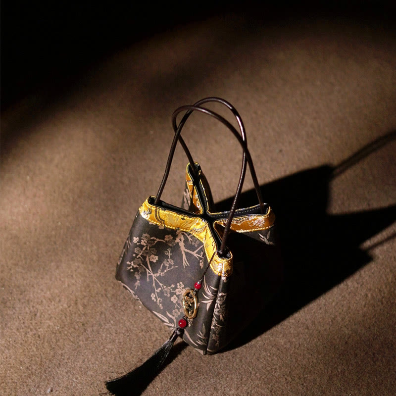 Buddha Stones Kwiat śliwki Gałęzie bambusa Haft Chwost Xiangyunsha Jedwabna torba na ramię Torebki wiszące