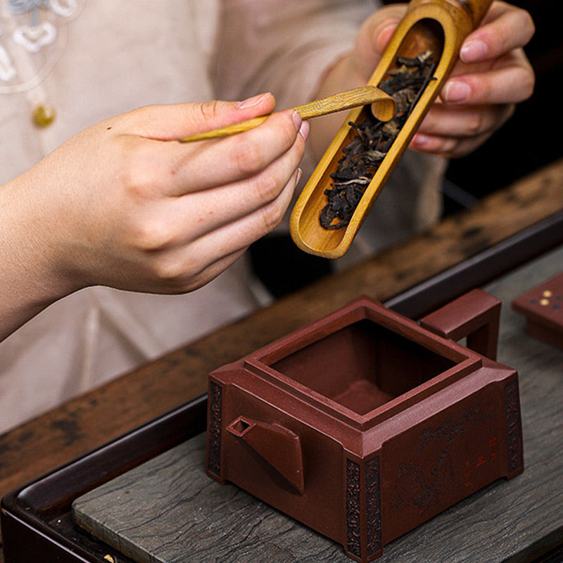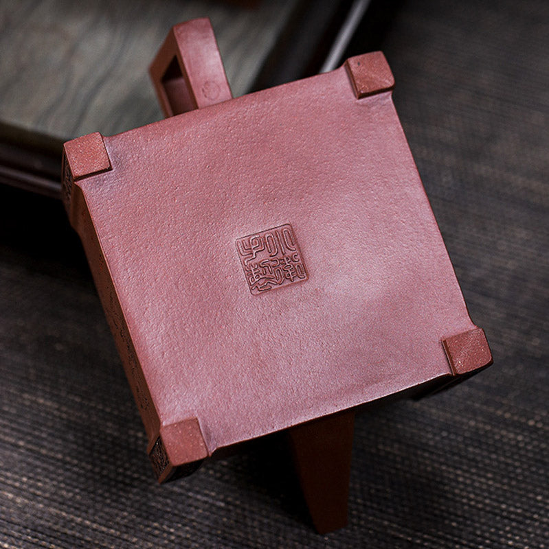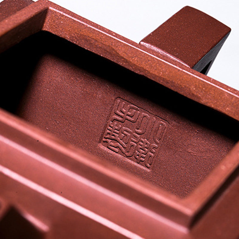 Ten czajniczek jest wykonany z fioletowej gliny. Jest całkowicie ręcznie robiony. Jest ręcznie robiony przez Mistrza Wu Xiao Wei. Ten czajniczek ma klasyczny kwadratowy kształt z dekoracją Gomoku, pozwalając pięknu fioletowej gliny i wykonania mówić samemu za siebie. Po lewej stronie czajniczka znajduje się zdjęcie dwóch osób grających w szachy, a po prawej stronie znajdują się słowa „Enjoy playing chess” (chiń.:乐在棋中).