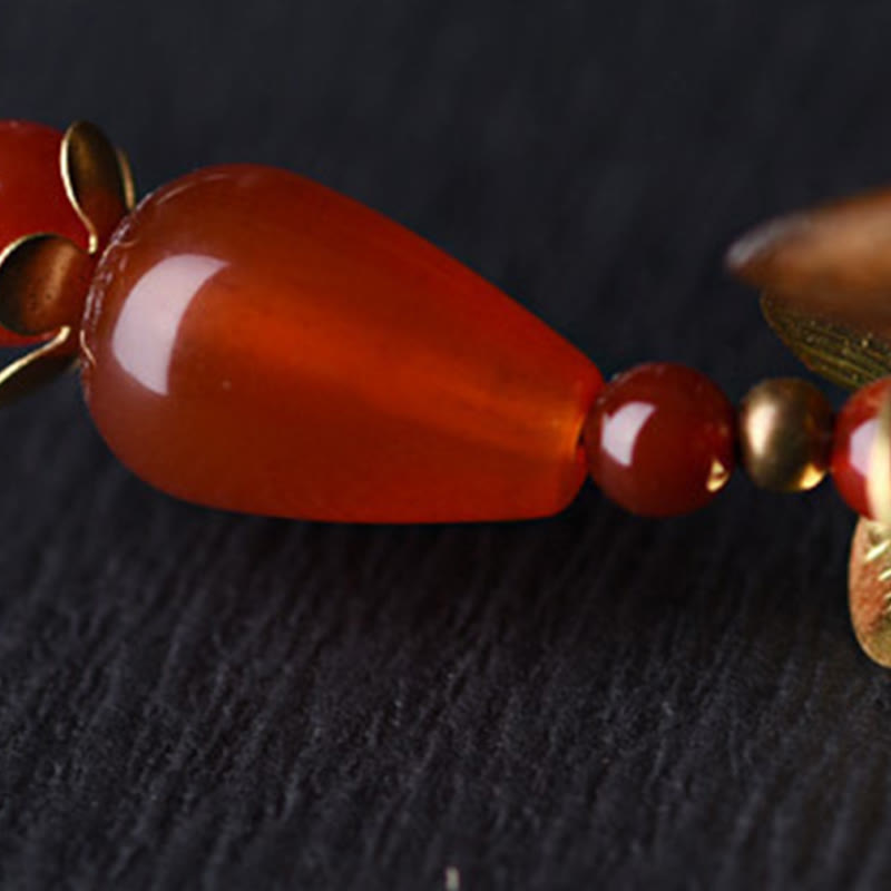 Czerwony agat może poprawić logiczne myślenie i pomóc w podejmowaniu kluczowych decyzji. Jest dobrym materiałem na spokój i stabilność oraz pomaga w samoanalizie. Może wywołać samoakceptację i pewność siebie oraz uleczyć gniew. Bardzo pomaga osobom z zaburzeniami pourazowymi.